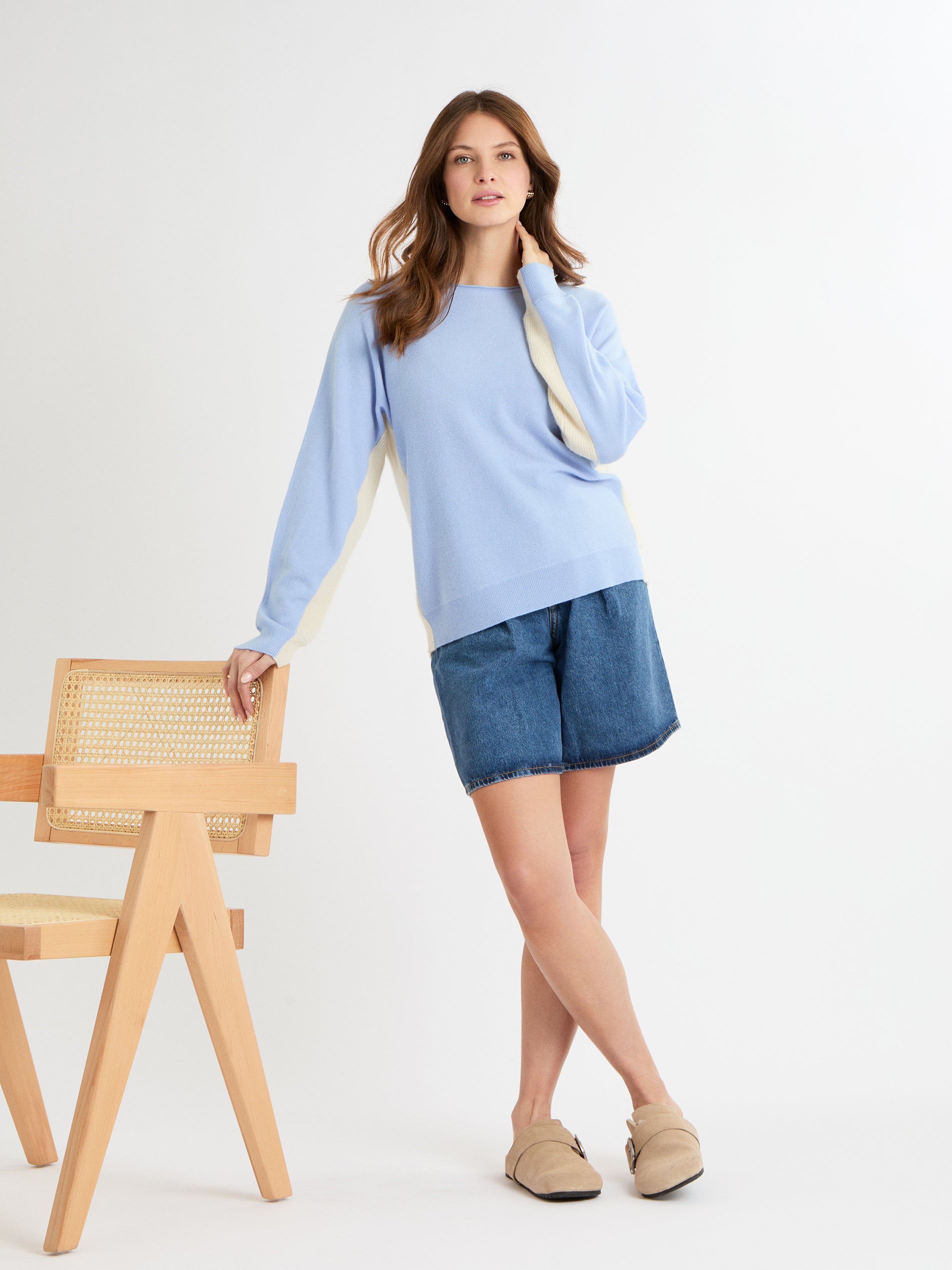 The Dania Jumper is an easy, relaxed knit that’s perfect for everyday layering. Its boxy shape and soft batwing sleeves make it comfortable to wear, while the crew neck and subtle ribbed trims give it a polished, modern touch. Finished with gently rolled edges for a playful, effortless detail, this 100% cashmere jumper is luxuriously soft and comes in classic French Navy or fresh Cornflower.