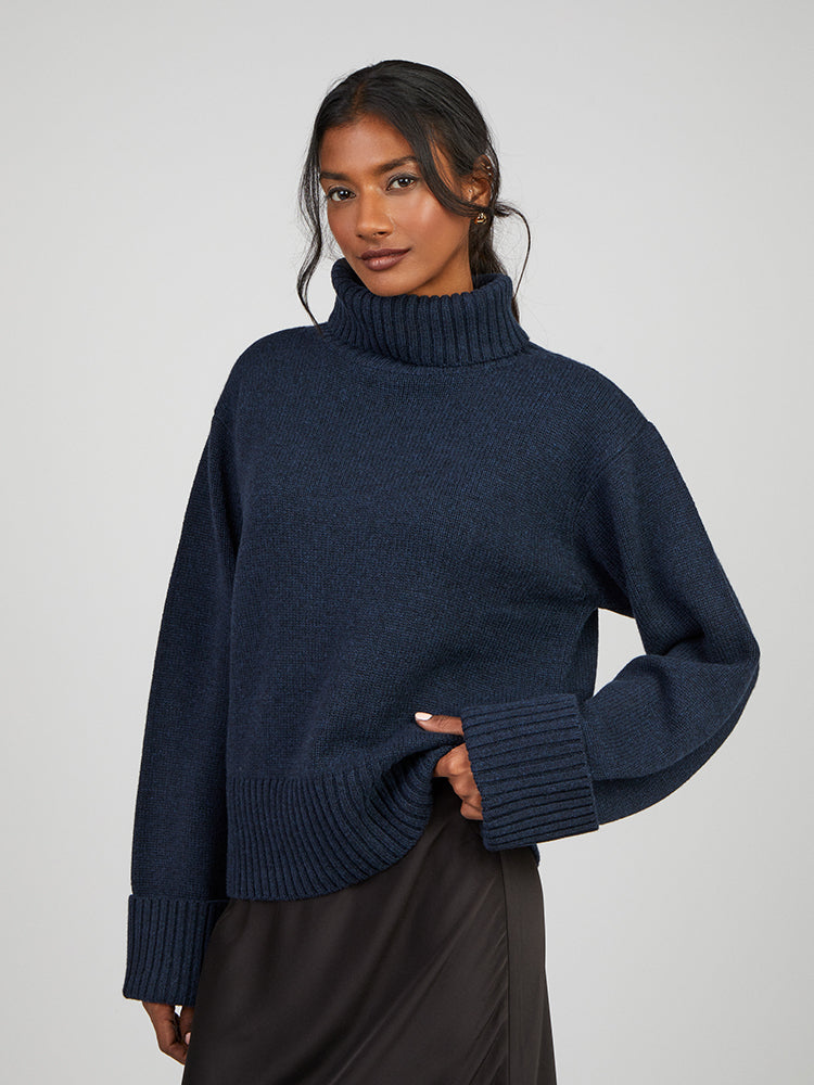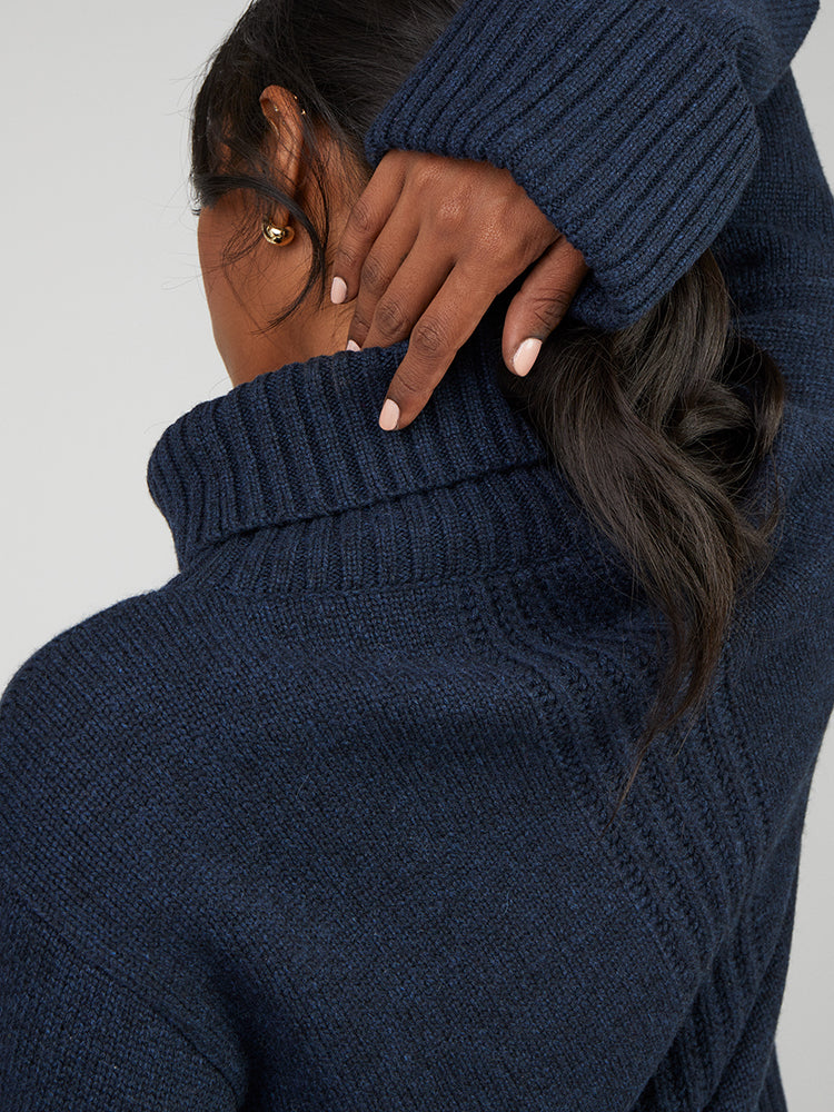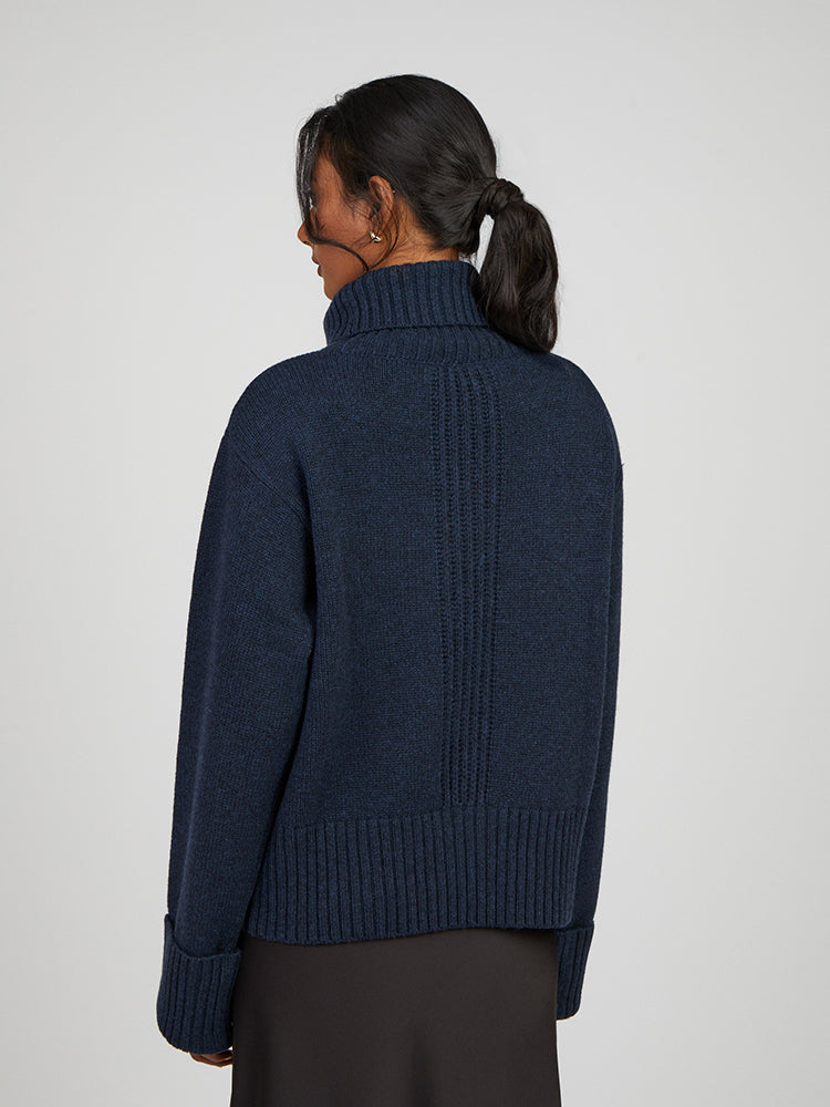 One of our most luxurious styles returns. Knitted in our heaviest-weight cashmere, the Harper jumper is crafted in a rich melange yarn with a relaxed, boxy fit. It features a soft roll neck, subtle rib detailing, and turn-back cuffs for added comfort and style. Slightly dropped shoulders and a clean, level hem complete this timeless and indulgent knit.