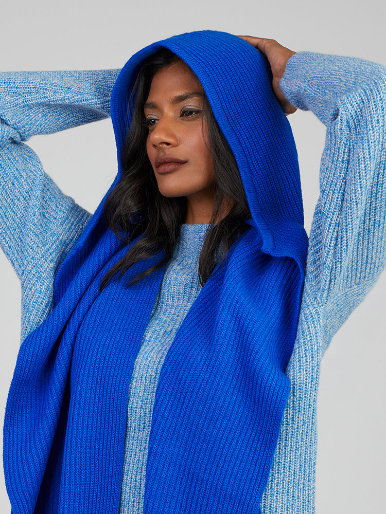 Arabella Fez Blu Wool Cashmere Hood Scarf