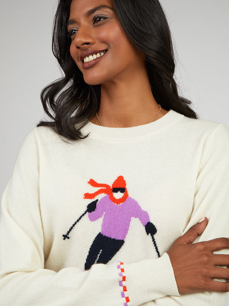 A modern nod to classic alpine style, the Skier Jumper features a subtle check design woven into soft, 100% cashmere. With a flattering neater fit, set-in sleeves, and contrast detail inside the neckline and above the cuffs, it’s a refined winter staple with a sporty edge.