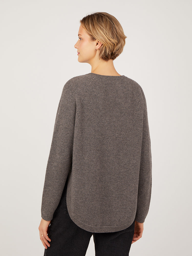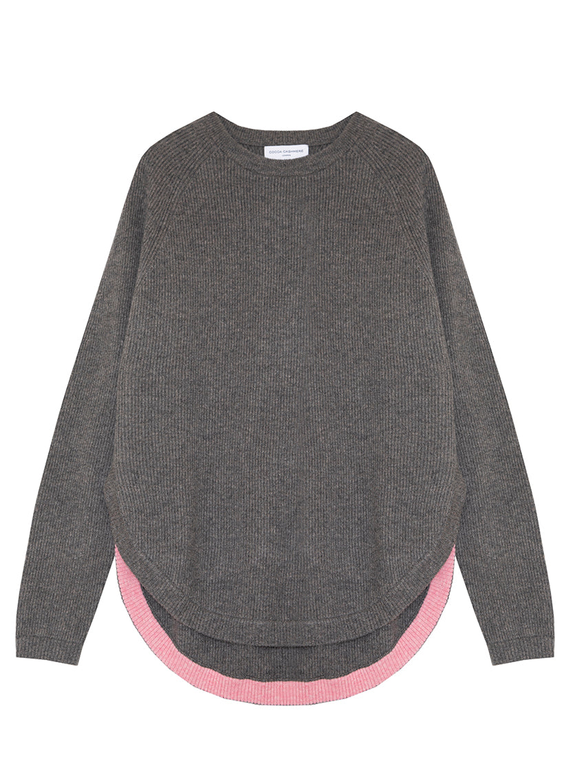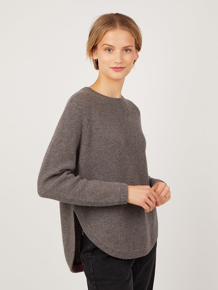 Astrid is a Cocoa favourite featuring a flattering curved hem - a boxy, longer line knit with a beautiful rib stitch. The contrasting pop of colour on the hem and cuff adds a special touch to the knit. Pair with your favourite jeans for the perfect everyday look.