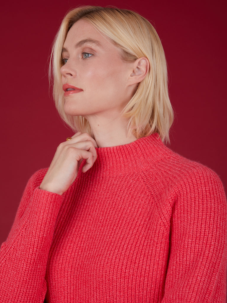 Featuring a high neck, rib knit and raglan sleeves, it has been designed with a flattering boxy shape is styled here with black trousers but would also look great with your favourite jeans or layered over a dress.
