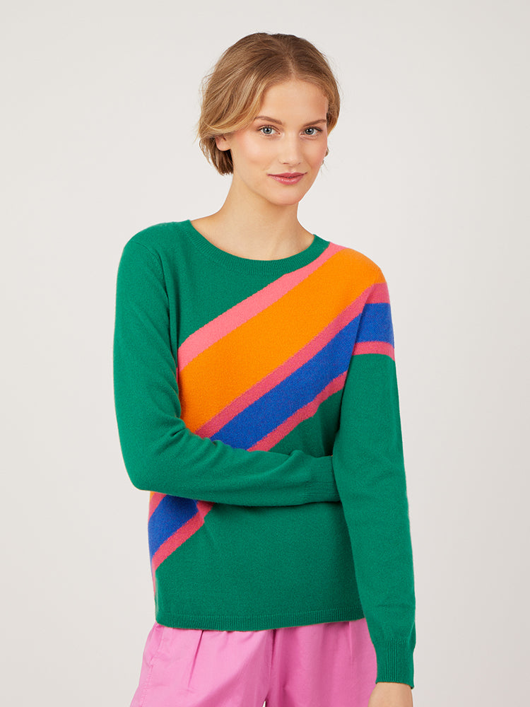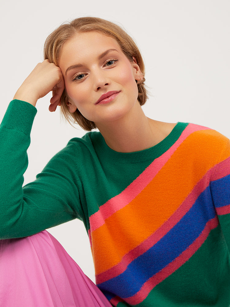 Edie Green Lake Rainbow Stripe Cashmere Jumper