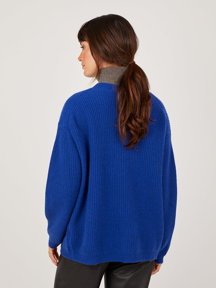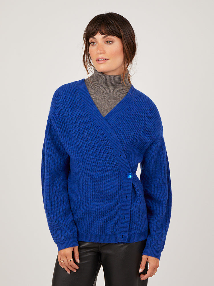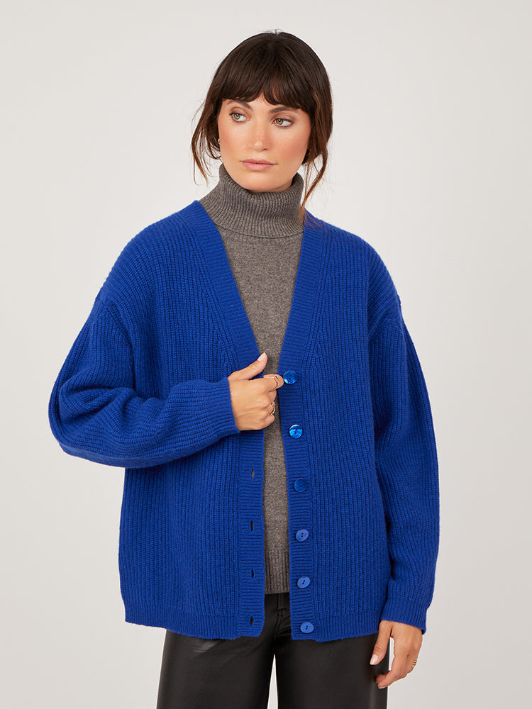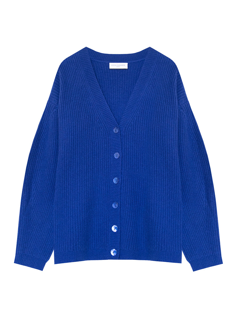 The Elah Rib Cardigan in a vibrant Blue Star tone is a relaxed shape for easy layering. Knitted in a rib stitch, the cardigan features an additional side button to allow you to cinch in at the waist for a more flattering fit. Pair with denim, or lean into the colours and wear with tailored trousers in a matching colour. Also available in Hazelnut and Mole Grey.