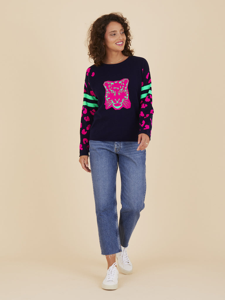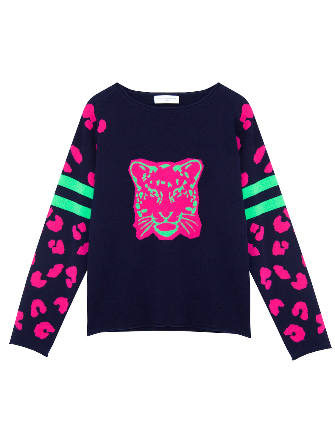 The boxy shape and plain knit creates a flattering oversized fit, with expert hand flat intarsia creating a stand-out leopard print. Pair with your favourite pair of jeans and boots.