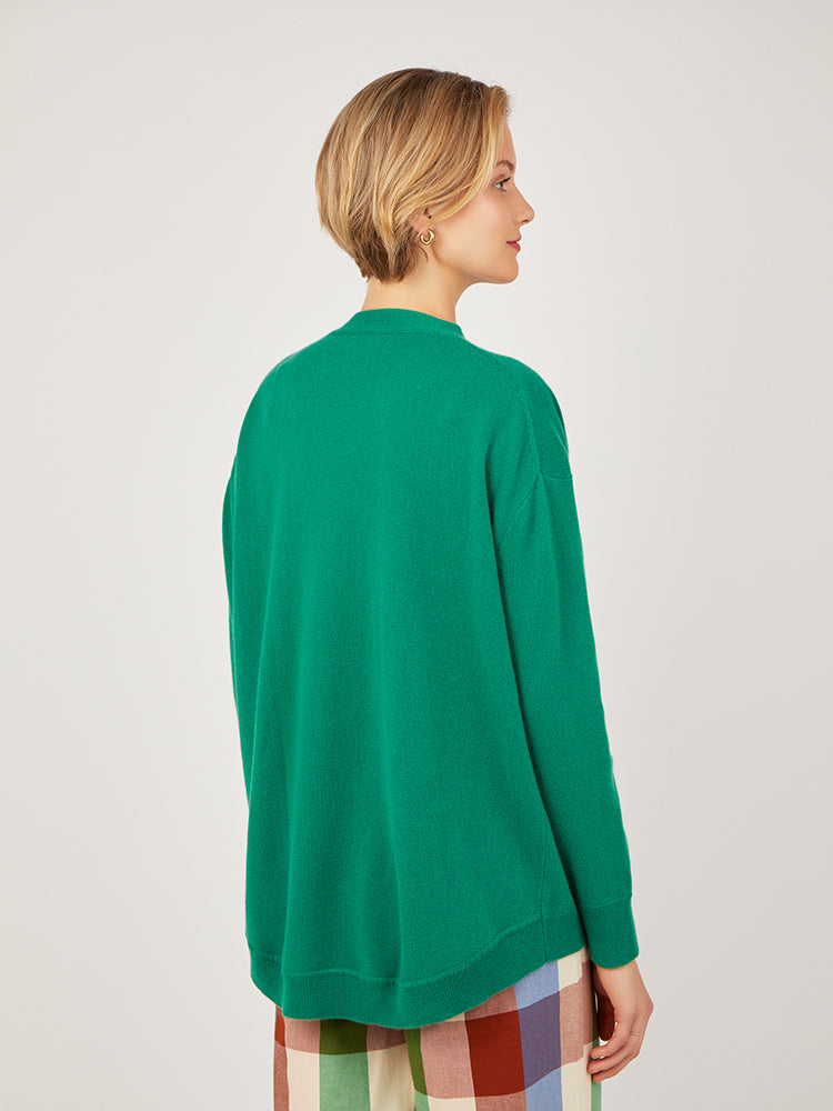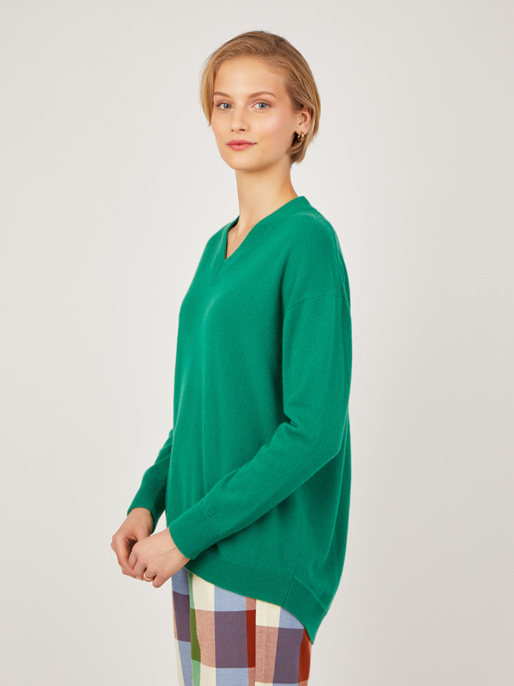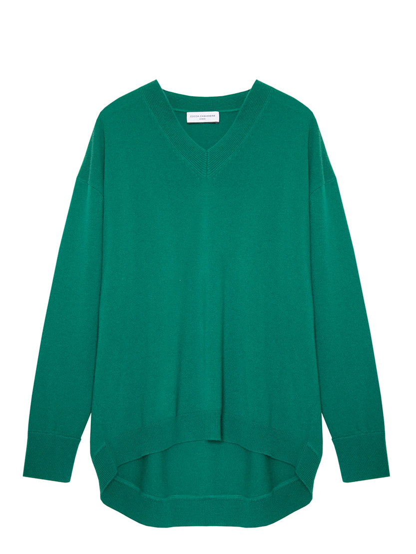 A classic Cocoa shape, the Natasha jumper is a well loved style. Knitted in our super soft cashmere yarn, the shape is boxy and relaxed with a v neck. The Natasha features a distinctive dipped hem, longer at the back.