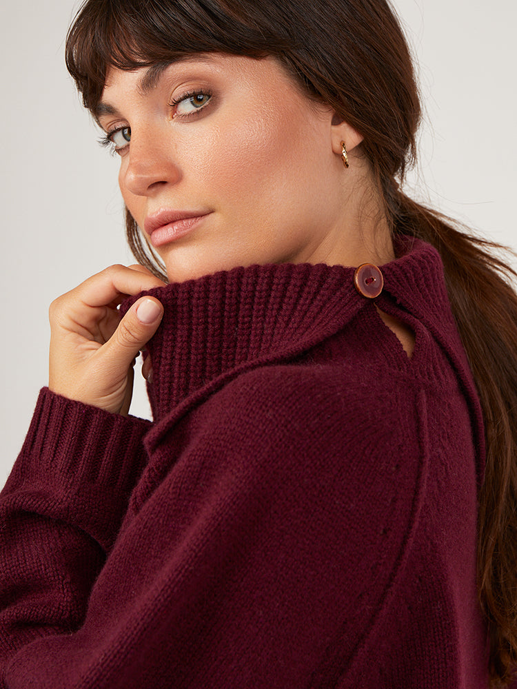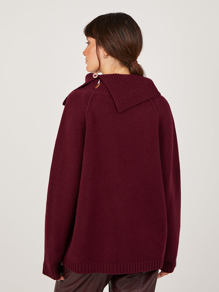 The Saylor Jumper features a flattering relaxed shape with an oversized ribbed collar that can be worn two ways. Simply button up or leave open with an exaggerated collar. Featuring a subtle pointelle stitch detail to elevate the design, combined with the heavier weight makes this a truly luxurious wardrobe must-have this season. Also available in Storm Grey and Pearl.