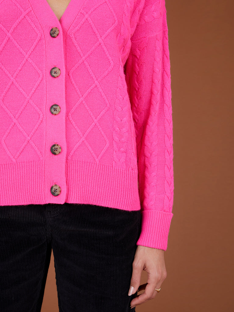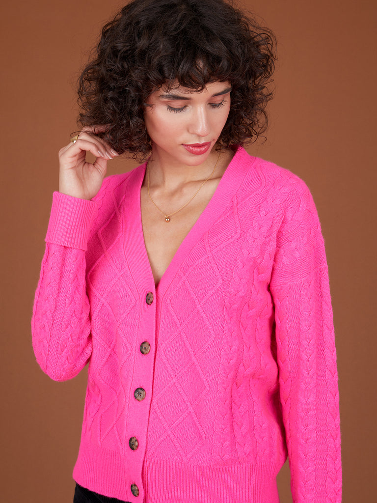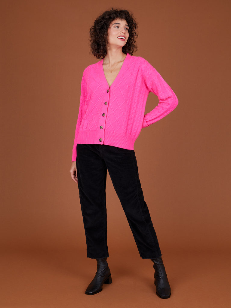 Tegan Dayglow Pink Cashmere Cardigan