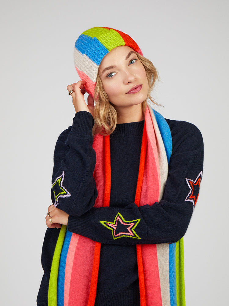 A cosy essential with hand-knit appeal, the Elyse beanie is crafted from pure cashmere and features a subtle vertical stripe pattern. Designed with a classic turn-up hem, it’s the perfect finishing touch to any winter look. Pair with the Elyse scarf for effortless cold-weather style.
