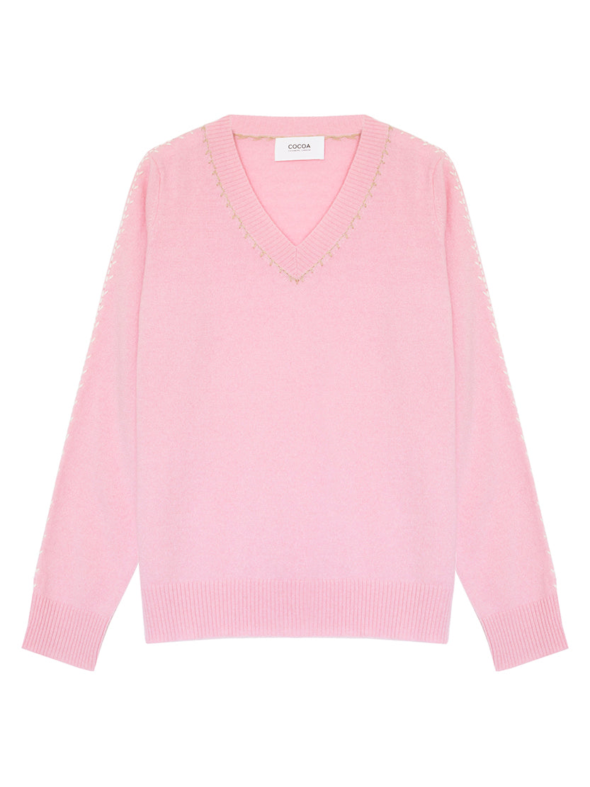 The Indie Jumper is a light, easygoing knit that’s perfect for sunny days and breezy evenings. Its relaxed, boxy shape and softly dropped shoulders make it effortless to wear, while the V-neck and delicate embroidery add a touch of refinement. The playful contrast stitching brings a pop of character, especially in the soft Pastel Pink, Marine Blue, or Grey Mist shades. Made from 100% cashmere, it’s luxuriously soft and ideal for layering your summer wardrobe with style and comfort.