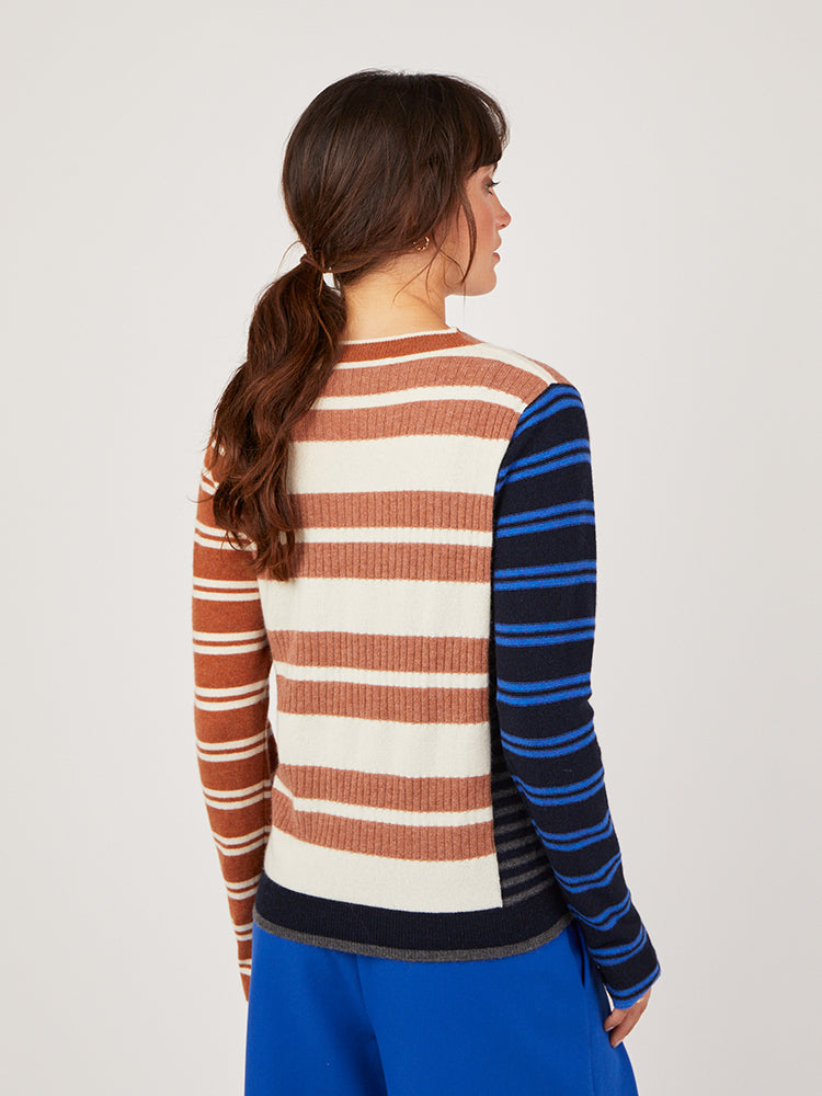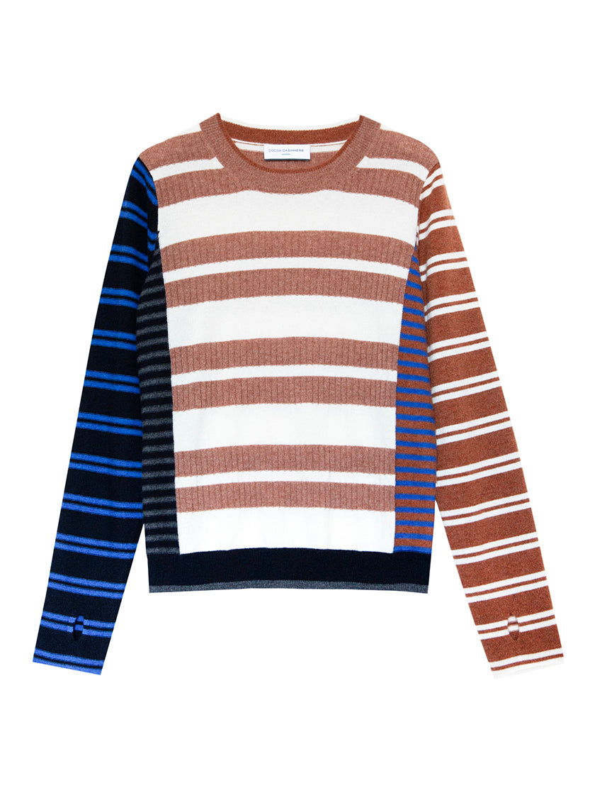 The Ximena Jumper features a unique, contrasting colourful pattern on the main body and sleeves. A neater fitting style knitted in our 100% cashmere yarn with thumb holes on the sleeve. Simply pair with your favourite blue or white jean for the ultimate day time look. Also available Cabaret Marl Stripe.